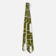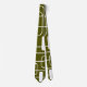 This tie has a mid-century modern design of open and closed rectangles in white on a field of camo green.