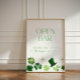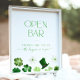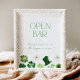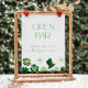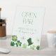 Modern Open Bar Sign with green shamrocks for a St. Patrick's Day themed Bridal Shower: