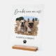 This fun wedding bar sign features your fur babies photos and the text "Drinks are on us!" A fun way to include your pets on your wedding day.