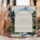 Wedding poster for open bar with fully editable funny rhyme. This design depicts a serene woodsy waterfront, where lanterns glow warmly along the edge of a glistening lake. Tall cedars and redwoods frame the scene, their reflections shimmering in the water as the sun sets in the background. The lanterns create a sense of quiet intimacy, perfect for capturing the magic of an evening wedding by the lake.