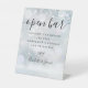 This elegant winter background black script minimalist open bar sign is perfect for all celebrations. Designed by Thisisnotme©