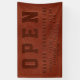 Customise this unique and eye-catching brown faux vegan leather Open Business banner featuring business name and hours of operation. Design created with 3 layers of bold typography in different shades to simulate the embossed look.