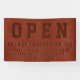 Open Business Hours Embossed Brown Vegan Leather Banner