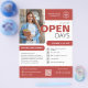 Invite future students and families to explore your campus with this professionally designed Open Day flyer. Perfect for colleges, universities, or educational institutions, this template highlights key event details like date, time, location, and featured activities—such as campus tours, info sessions, and meet-and-greets with faculty. With bold headings, modern icons, and a clear call to action, it’s an ideal way to promote your admissions event, both online and in print. Easily customisable to fit your school's branding and event schedule.