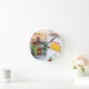 The clock did not take as long to arrive as I thought it might and was extremely well packaged. I didn't do the measurements so I didn't realize it is a little smaller than the average clock but that does not matter (just make sure you check if that's important to you).It is really nifty! It seems very solid and well made not flimsy at all. It has been going well and has kept good time in its few weeks on my wall. Nice product. Gets noticed too! Nicer in real life than the picture but true to the picture