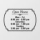 Display your business' hours of operation with this personalised window cling. The design includes a modern frame shape and a flourish below the words "Open Hours," plus room for you to include the days and times of operation. Use the easy template to personalise. DESIGN TIP: You can also "customise further" to rearrange, resize or delete any element. All fonts and colours can be changed - including the colour of the flourish and frame!