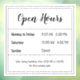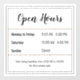 Explore the convenience of our "Open Hours Sticker: Customise Your Schedule." Crafted with simplicity in mind, this sticker showcases a clean white background with bold black lettering, ensuring your business hours are easily noticed.