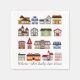 These paper napkins feature a vector image of a group of various types of houses, with the customisable text, Welcome~Open House. Perfect for a realty group's open house!