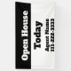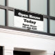 This real estate open house banner has display text says "Open House Today" but you can change the wording as needed. At the bottom, there's a place to add the real estate agent's name and phone number. The top portion is black. The rest of the banner is white. All text can be edited or deleted.