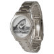 Dig this cool Great White Shark breaching the waters off your nearest shore! "Crosshatch style" sketch drawn by D.L. Sherwood. Fresh contemporary design on a classic silver watchband offers a stylistic look for summer.