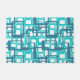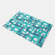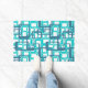 This doormat has a mid-century modern design of open rectangles in blue over open rectangles in robin's egg blue.
