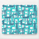 This mouse pad has a mid-century modern design of open rectangles in blue over open rectangles in robin's egg blue.
