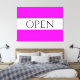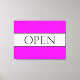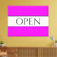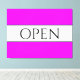 This fun, nostalgic design features OPEN text inside a wide white centre stripe highlighted with black pinstripes against a bright wide tropical pink background stripes. The text can be personalised.