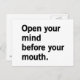 Open Your Mind Before Your Mouth. Postcard