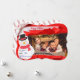 Add your names and photo to this fun captivating Christmas card with an opened Christmas gift revealing your family photo. Your name clearly written in blue ink script on the gift tag. Fun!