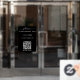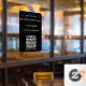 A black opening business hours window decal and window cling featuring business logo, QR Code, your custom and contact details. A personalised welcome sign shop hours by appointment only window cling perfect for shop windows and front door signs. Perfect for a business shop owner who would like to notify their customers about its opening hours.