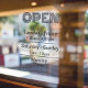 This cling is designed to help businesses make their opening hours known to potential customers. It's an easy way for customers to quickly find out what time the business is open and when they can expect to find it open.