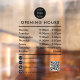 A black opening business hours window decal and window cling featuring business logo, QR Code, your custom social media icons and contact details. A personalised shop hours window cling perfect for shop windows and front door signs. Perfect for a business shop owner who would like to notify their customers about its opening hours.