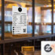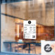 A white opening business hours window decal and window cling featuring business logo, QR Code, your custom social media icons and contact details. A personalised shop hours window cling perfect for shop windows and front door signs. Perfect for a business shop owner who would like to notify their customers about its opening hours.