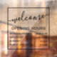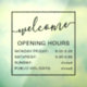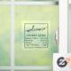 Square, opening hours window cling featuring the text "welcome" in an elegant calligraphy script font and your opening hours. Black text on a transparent background.