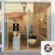 Modern, black, Business Logo, QR code opening times window cling. Personalise it with your details.