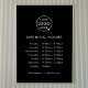 A simple custom logo business opening hours poster template in a modern minimalist style on a black background. This versatile template allows you to easily design a custom opening times list for your store, salon, restaurant, cafe or any other business. Need help? Feel free to contact me using the message button. I am happy to help with your personalisation, additional items or custom orders.