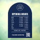 Opening Times With Qr Code Logo And Navy Blue Arch