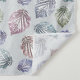 Openwork leaves on a light grey background with white polka dots. Autumn leaves.