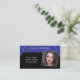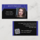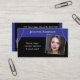An elegant business card for opera singers, classical vocalists, musical theatre performers and music tutors, in sleek black with blue stage curtains effect. The front can be personalised with your name, photo and occupation, while the back features a QR code for you to direct to your own website, as well as space for more information and your contact details.