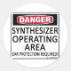 Danger, Synthesizer Operating Area! Ear Protection Required! This is fair warning to anyone around musical instruments. See all our musical designs on on cups, mugs, tee shirts, sweatshirts, hats, and other gifts and clothing.