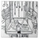 Image:214624 Operating table and surgical instruments, from 'Das Buch der Cirugia', published Strasbourg, 1497 (litho) (b/w photo). Brunschwig, Hieronymus (1450-c.1512). Private Collection, The Stapleton Collection. Art, Fine Art.