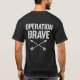 All-caps stencil text “Operation Brave” with two crossed arrows under the phrase. Graphics are outlined and lightly aged, but the overall look is bold on black without extra busy details.