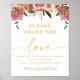 This sign is absolutely stunning. We used one of our engagement photos for the background and put a nice message to our guests on it, as well. Having the option to customize things how WE want is the great thing about Zazzle. The order arrived on time and in tact, made from quality materials. The foil will match perfectly with the gold theme of our wedding.