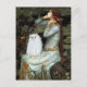 Ophelia (seated) by John W. Waterhouse (1898), adapted to include a white Persian kitten. Waterhouse based this painting on Shakespeare's Ophelia.