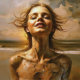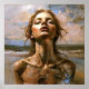 “Ophira” Fragments of the Sea. This image captures a moment where the human form dissolves into the textures of water and earth. It speaks of transformation, the beauty of impermanence, and the raw power of nature. A woman lost in the embrace of the sea, her face lifted towards the golden sun, dissolving into the elements. This artwork captures the delicate balance between serenity and erosion.