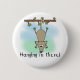 An adorable opossum hangs by his tail from a tree branch and kid style text reads "Hanging in there!" on possum T-shirts, mugs, tote bags, cards, hoodies, stickers, and other items.
