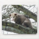 A photo of an opossum in a tree in early springtime, before the leaves had fully sprouted.