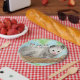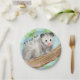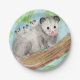 A watercolor of a good opossum mother, perched with her triplets on her back adorns these fun party plates!