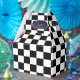 image of black and white checkers getting smaller going towards one corner creating an optical illusion.