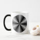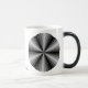 If you love black, this design will be great for you. It features shades of black and grey arranged in a dark to light to dark pattern that gives the circle like image an almost 3D look. This mug comes in multiple colours and styles, including travel mugs and steins.