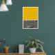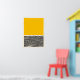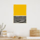 Abstract art with an optical illusion affect with bold yellow block, black wavy lines and a beige border.