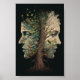 Optical Illusion Tree Faces With Leaves Blowing Poster