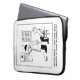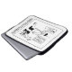 Optician laptop cover sleeve. The cartoon illustration shows an optician giving a customer an eye-test. Following a remark from the customer, the optician checks the spelling in the small-print on his eye-test chart and tells patient, "You're right - they have spelt 'Printed in China' incorrectly".