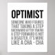 Optimist someone who figures that taking a step backward after taking a step forward is not a disaster, it's more like a cha-cha