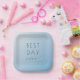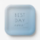 This elegant wedding plate features a minimalist design with a soft gradient blue background, creating a serene and calming atmosphere. The phrase "BEST DAY ever" is prominently displayed in a mix of bold sans-serif and flowing cursive fonts, adding a touch of sophistication and celebration to the layout. The overall style is modern and chic, making it perfect for commemorating your special day. With its clean lines and balanced composition, this plate is ideal for enhancing any wedding reception setting.
