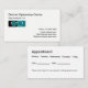 Patient appointment reminder business cards designed with an eyeglasses emblem you can use on our cards or replace with your own company logo. Replace the text with your own business information for a customised design. Created for an Eye Doctor, Doctor of Optometry, Vision care centre, or eyeglasses retail.