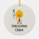 A cute chick wears a lab coat in front of an eye chart on this cute Optometry Chick ornament. This makes a cute gift for your favourite optometrist or optometry student.