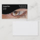 Optometry business cards with closeup of a human eye and simple text layout you can customise for an Ophthalmologist, eye doctor, eyewear store, or eye surgeon.