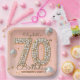 A masterpiece for a milestone. This "70th" birthday plate features a mosaic of elegant gold and white pearls, set against a soft blush pink background with floating balloons and confetti. The perfect centerpiece for a sophisticated 70th birthday celebration.