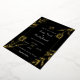 Prepare to be captivated by the allure of our Opulent Elegance Black and Gold Wedding Invitation. Stepping into a realm of luxury and sophistication, this invitation commands attention with its striking black canvas, exuding an air of mystery and intrigue. Each corner is adorned with intricate gold leaves, adding a touch of regal splendour to the design.